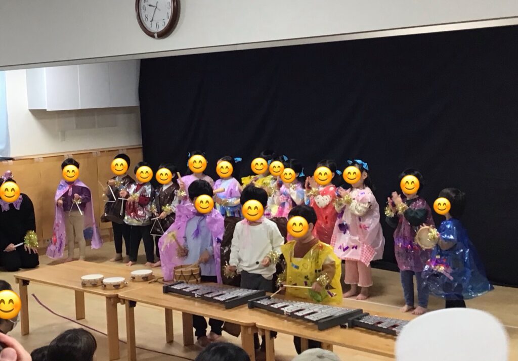 アイドルになって気持ちを込めてダンス♪保護者の方には推しうちわを用意してもらい大盛り上がりのLIVEとなりました!後半は楽器を使いリズムに合わせて演奏しました。保護者の方にも一緒に歌ってもらいながらの演奏を子ども達はとっても楽しんでいましたよ。