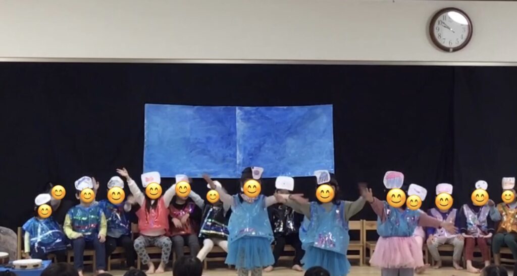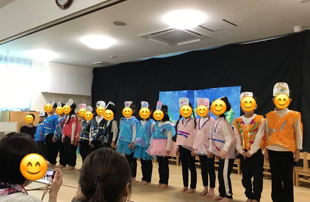 年長組のけやき組さんは子ども達の話し合いの末劇をする事に。どうしたら見ている人に伝わるかな?どんな事を披露しようかな!とみんなで考えながら作り上げていったスイミー、本番当日はみんなの真剣な気持ちがとても伝わってきました。