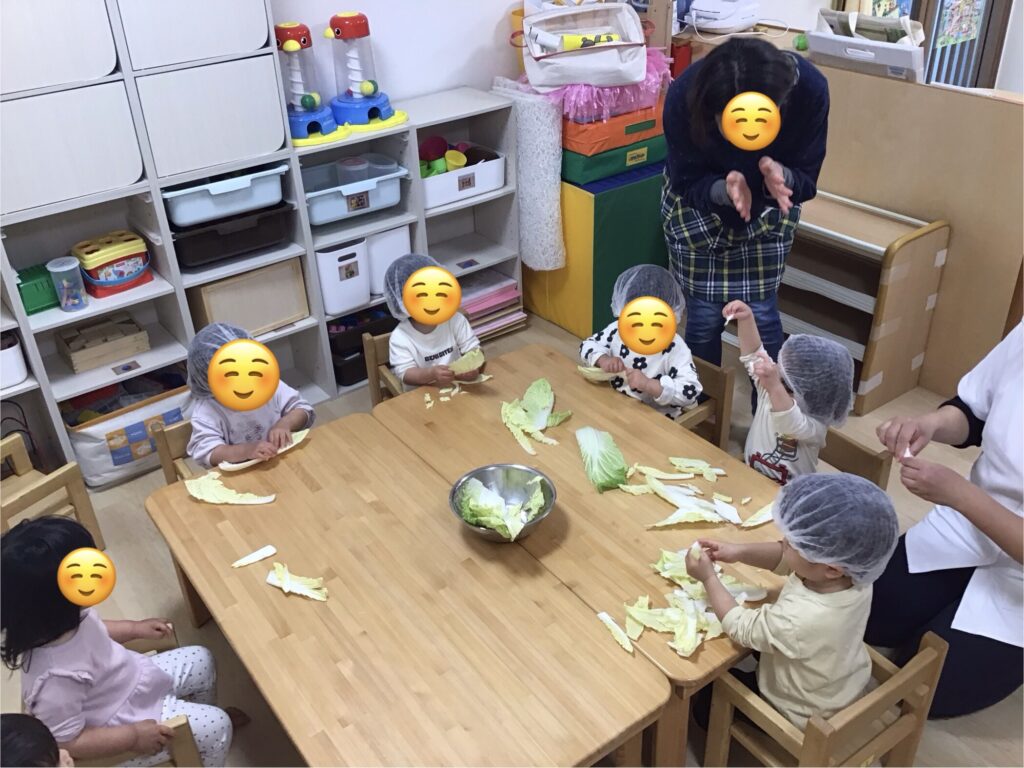 おやつの前に、みんなで「白菜ちぎり」にも挑戦しました⭐︎